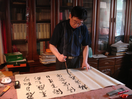 2007年5月應人民大會堂管理局之約,為人民大會堂書寫毛澤東七言古詩(6米×3米)一幅。 |