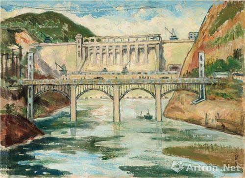 關良《新安水電站》 布面 油畫 61×82.5cm