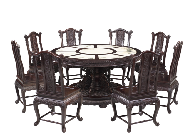 清式檀香紫檀云龍紋鑲理石圓桌九件套(伍炳亮創新設計)