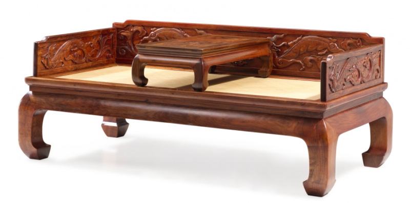 明式黃花梨高浮雕龍紋羅漢床配幾(伍炳亮作品)