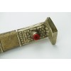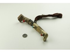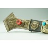 藏刀由紅藍寶石鑲嵌,手柄處材料為鱷魚皮,是難得的精品藏刀