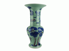 【珍稀奇文博館】豆青單色釉花觚 瓷器收藏