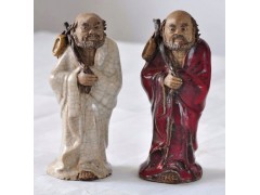 清末石灣窯達(dá)摩人物瓷像,釉色一紅一白 ,有雨記印款。高27厘米。
