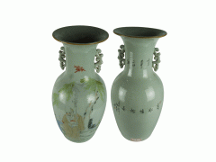 淺峰彩蓮子瓶一對(duì) 汪友棠書(shū)畫(huà)瓷器收藏