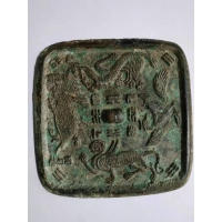 方形四瑞獸八卦銅鏡,有銘文、本人展出所有藏品均可交易,或置換其它物品!