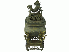 說明:紋飾主題為“竹報平安”,造型奇特,制作精巧,此屬家庭大戶人家供奉熏香爐