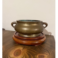 此件難得明末或者清早大號鎏金銅香爐,高9.5厘米,耳距25厘米,口徑17厘米,重2.6公斤。品相完美無任何老補,該藏品我在英國倫敦購得,如有喜歡的人士與我聯系謝謝