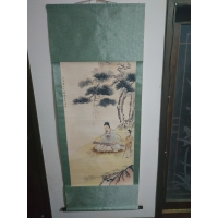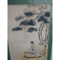 清代真然大師工筆畫《松蔭撫琴》圖、立軸、5平尺、本人展出所有藏品均可交易,或置換其它物品!