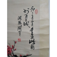 嶺南畫派大師關山月作品,《紅梅》,4平尺、立軸。本人展出所有藏品均可交易,或置換其它物品!